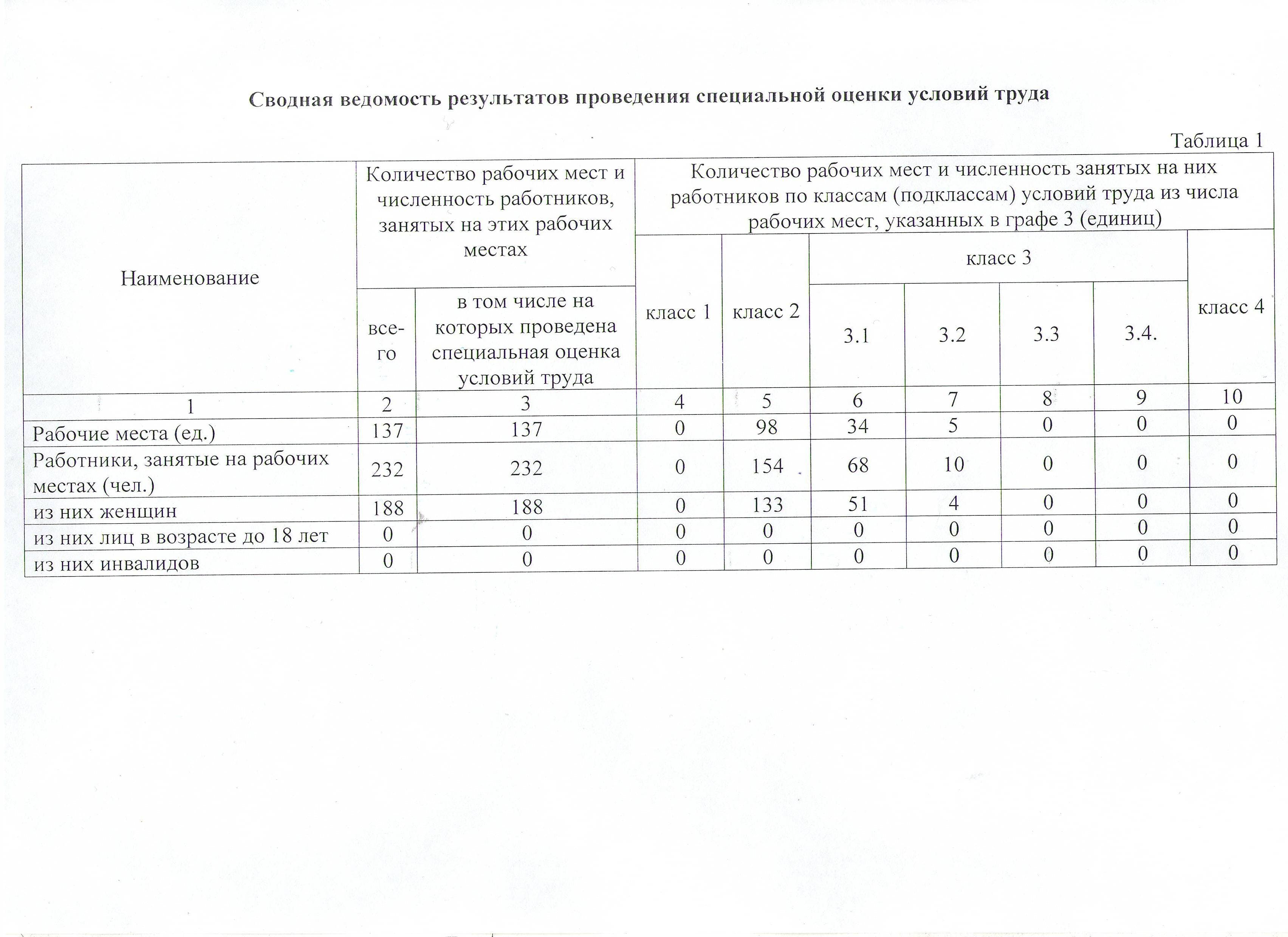 Сводная ведомость результатов проведения специальной оценки условий труда.