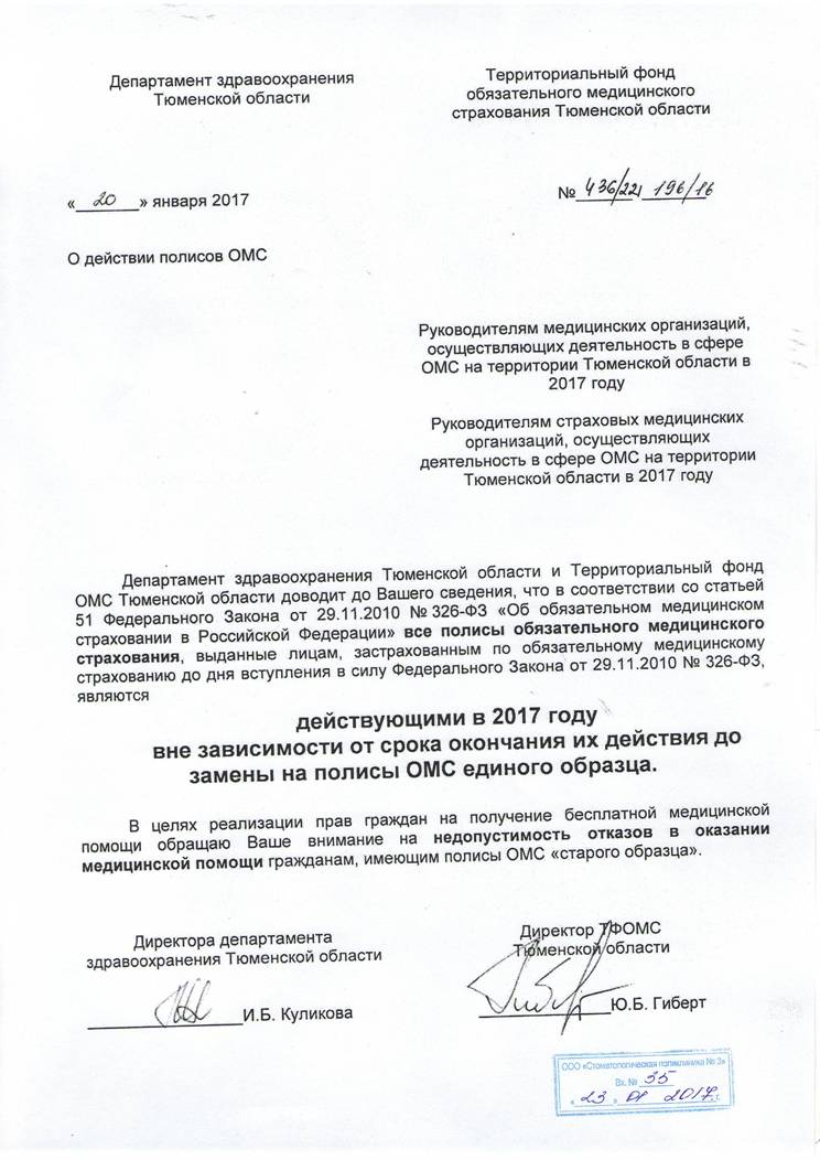 - Приказ №989/1/26-34-787/6 «Об организации стоматологической помощи взрослому населению Тюменской области»