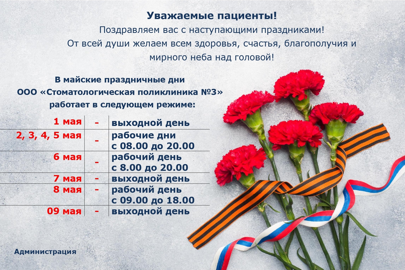График работы в праздники (1-9 мая 2023)