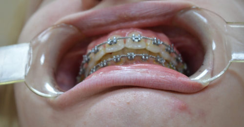Брекеты крепятся на каждый зуб и дугами скрепляются между собой. Степень натяжения регулируется в зависимости от особенностей челюсти. Под воздействием направляющей силы зубы постепенно меняют свое положение.