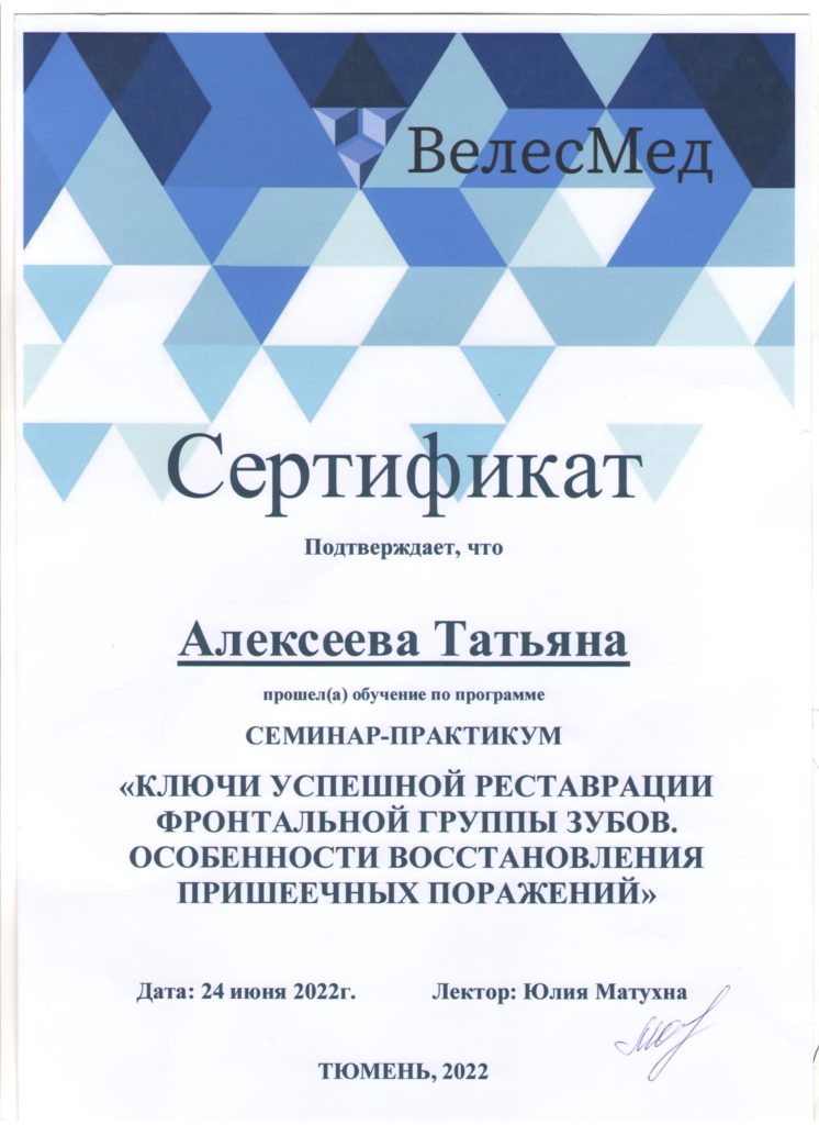 Хотим искренне поблагодарить Алексееву Татьяну Леонидовну и её ассистента за профессионализм, доброту, трепетное отношение к нашему малышу. Посещаем доктора больше года. Начали с полутора лет, когда стала разрушаться эмаль на резцах. Доктор внушила оптимизм. Сказала, будем бороться! И мы боремся, приходим каждые 3 месяца. Всегда чуткое отношение, быстро, при этом нежно выполняем все манипуляции, получаем домашнее задание. Спасибо Вам!