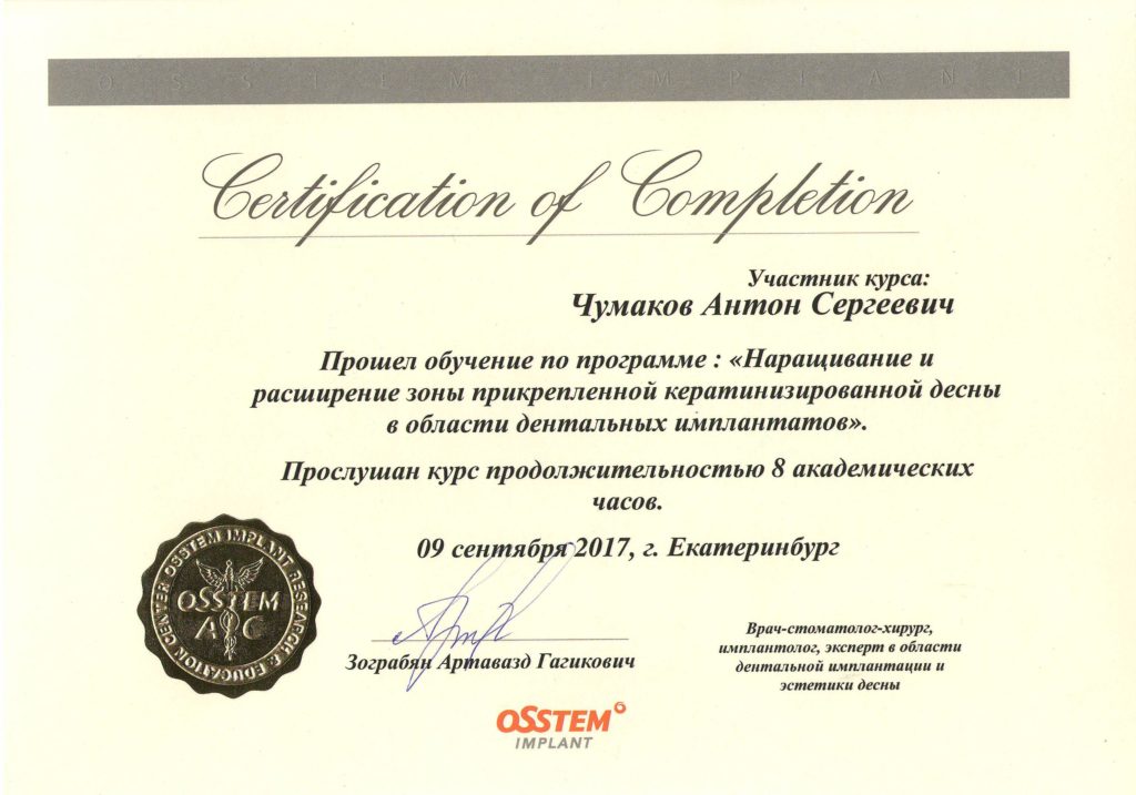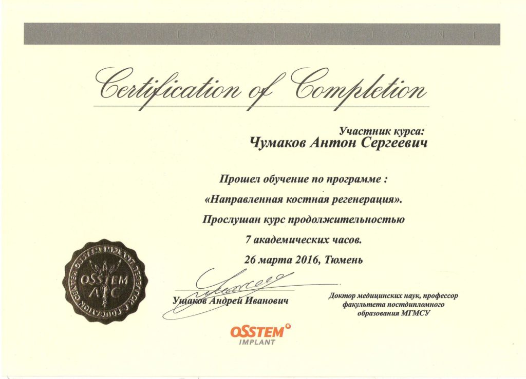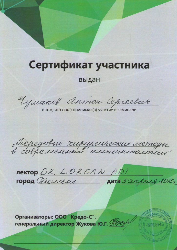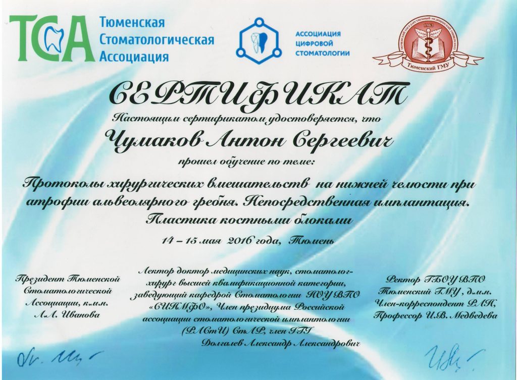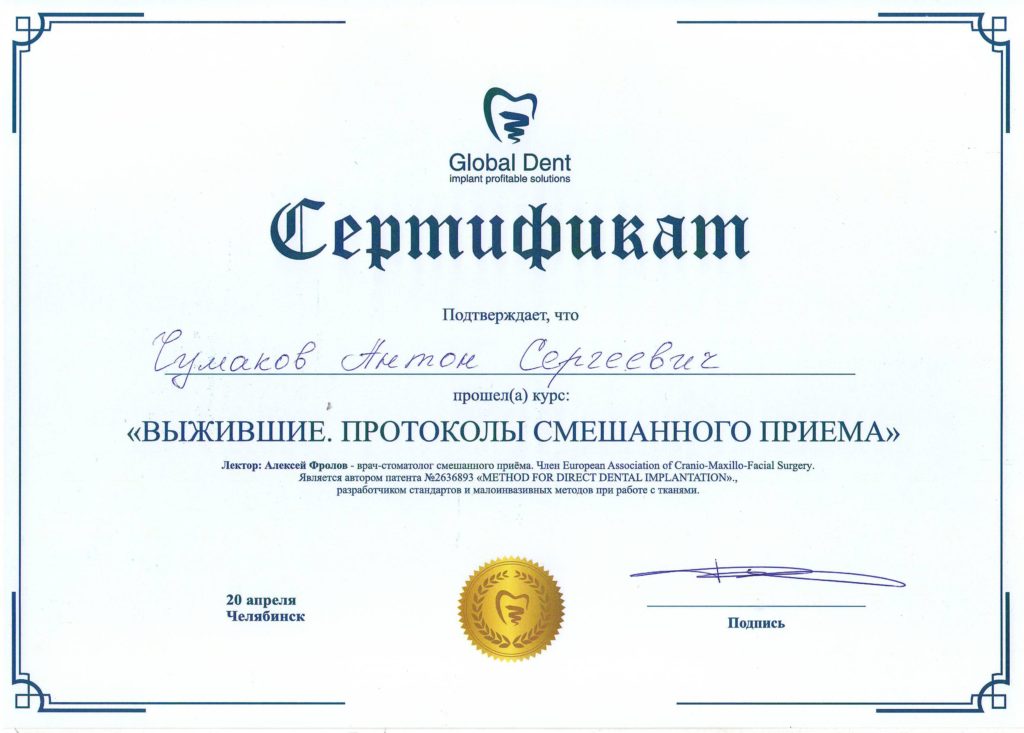Чумаков Антон Сергеевич, внимательный, отзывчивый доктор, готов идти на встречу! Очень боялась делать импланты, но теперь всем советую этого доктора, мастер своего дела. Операция прошла быстро, безболезненно и восстановительный период прошел быстро.