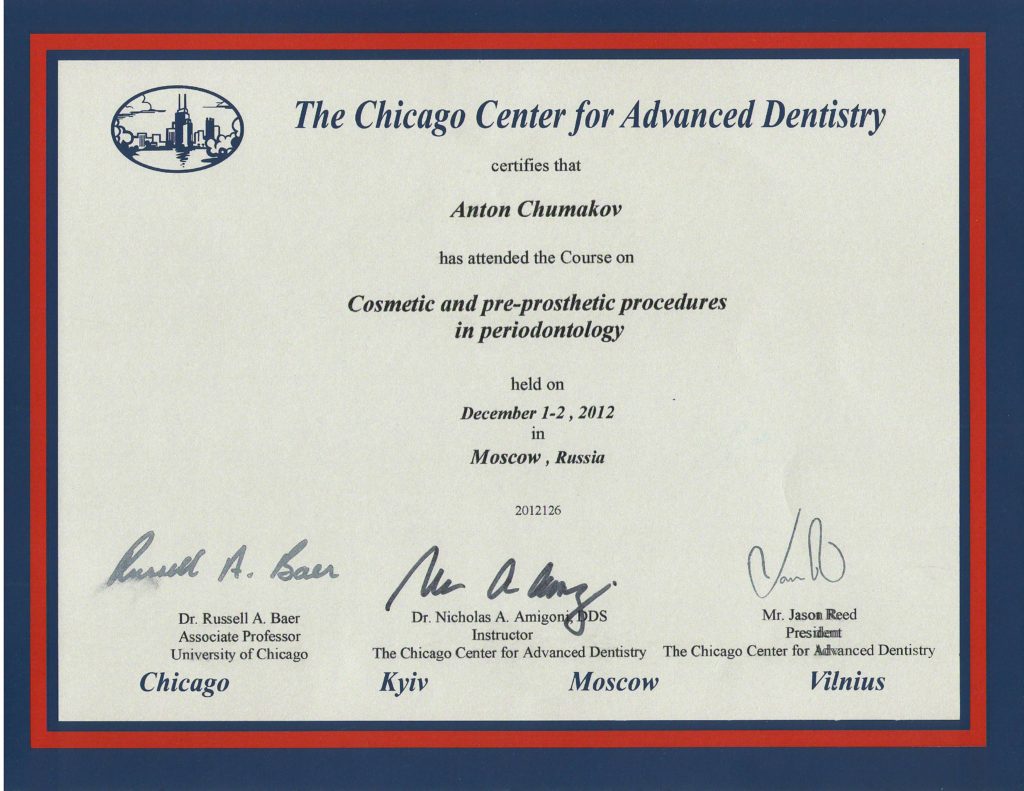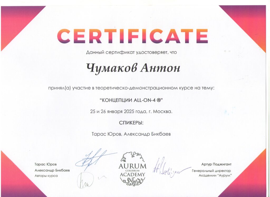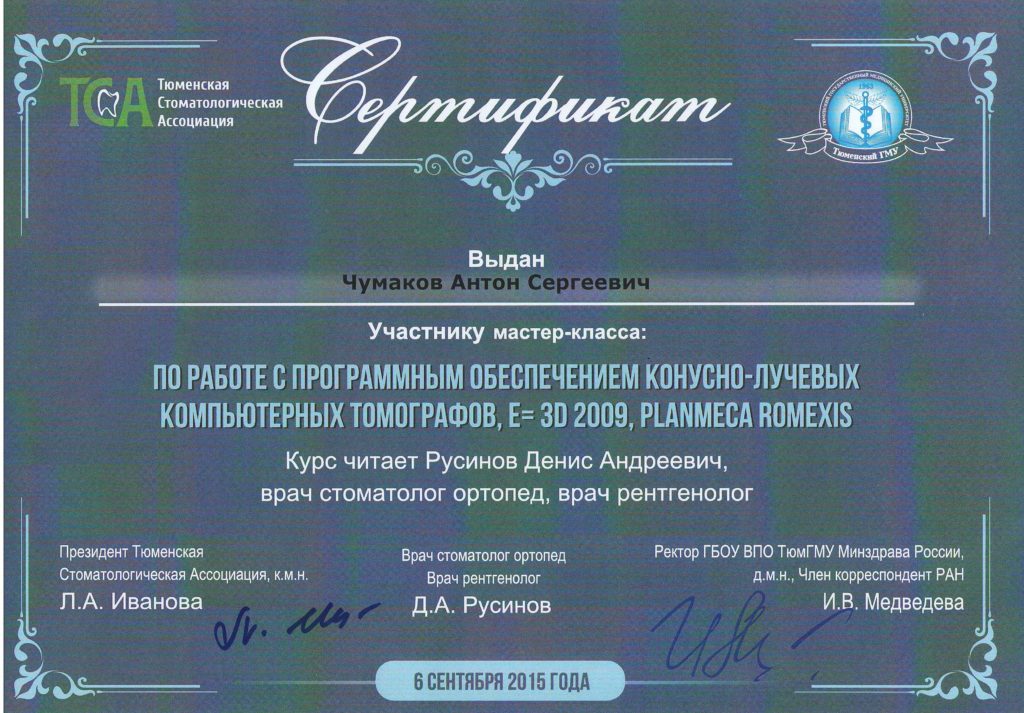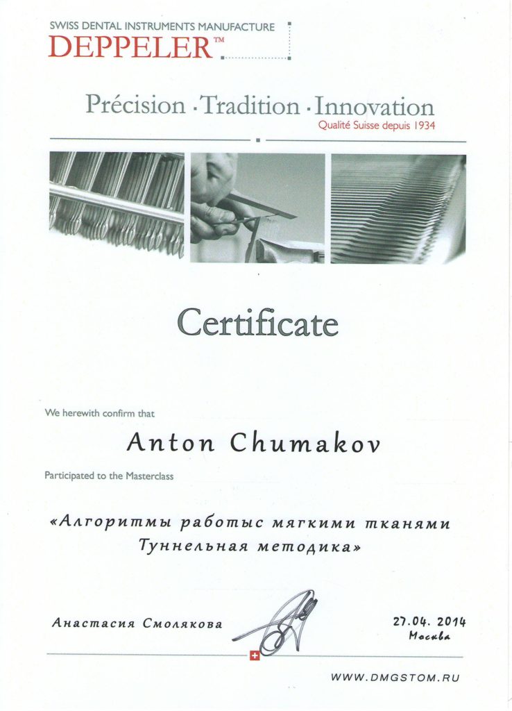 Нет слов, чтобы выразить восхищение уровнем работы Чумакова Антона Сергеевича и его помощницы. Антон Сергеевич - это ПРОФЕССИОНАЛ (с большой буквы), которых в настоящее время нечасто встретишь. Очень рад, что мне посчастливилось попасть в руки Антона Сергеевича. Желаю ему и всему коллективу здоровья и всего самого наилучшего.