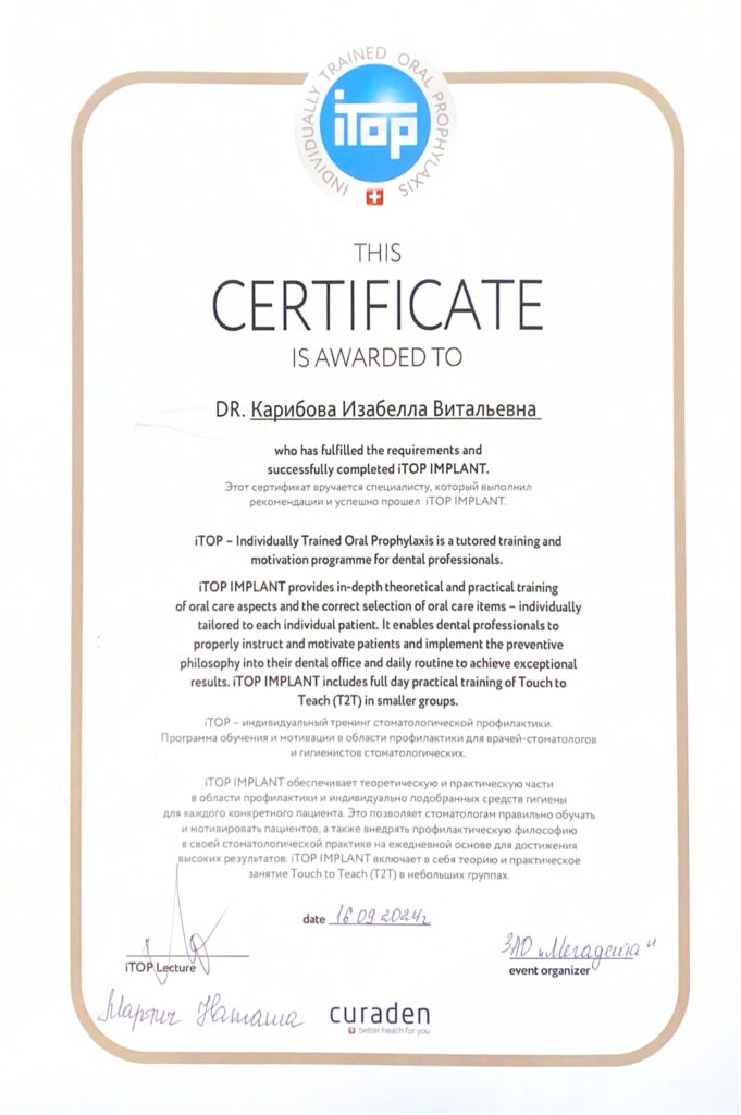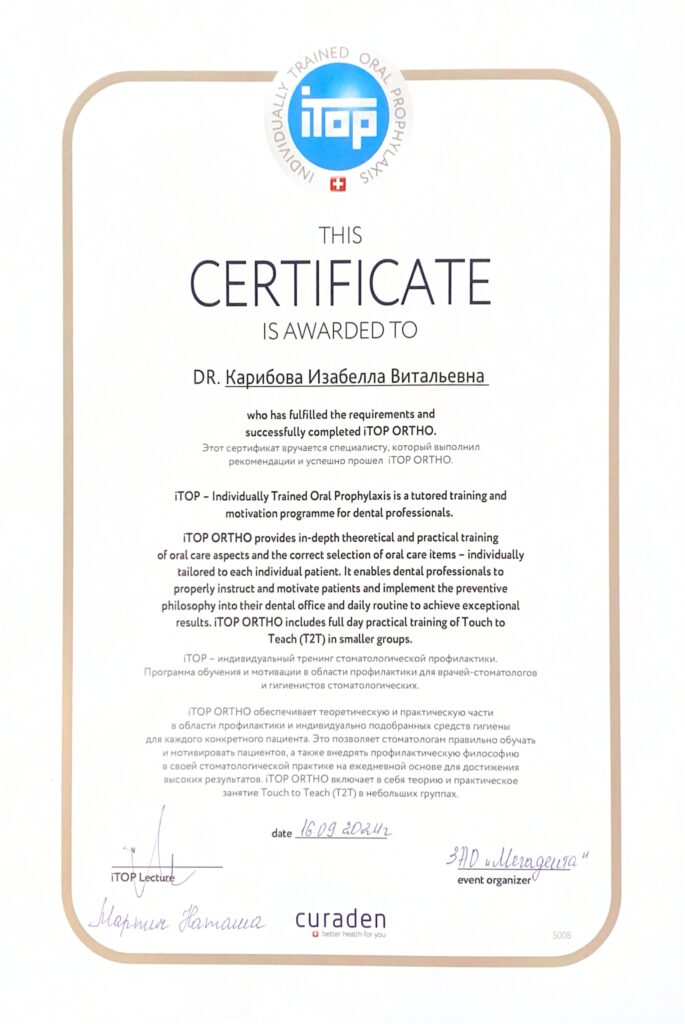 Первичная специализированная аккредитация по специальности «Стоматология терапевтическая» от 16.10.2021