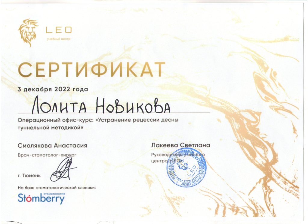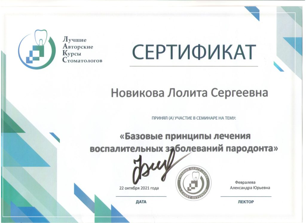 Первичная аккредитация по специальности «Стоматология общей практики» от 23.11.2021