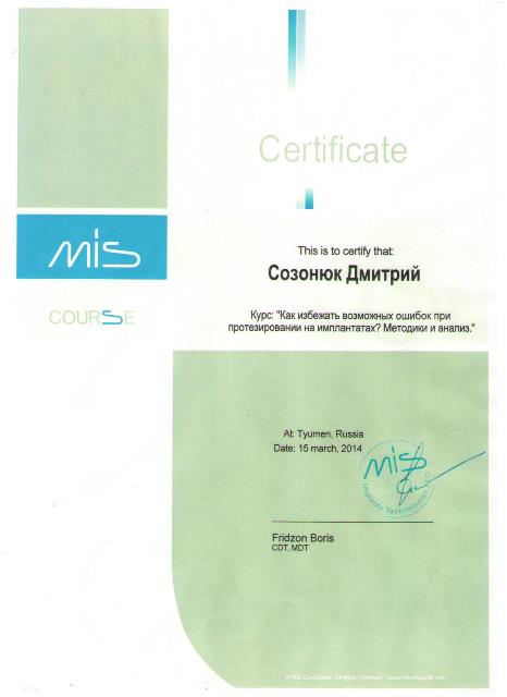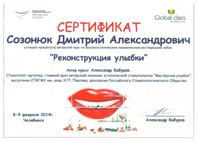 Сертификат 1174242720238 по специальности «Стоматология ортопедическая»