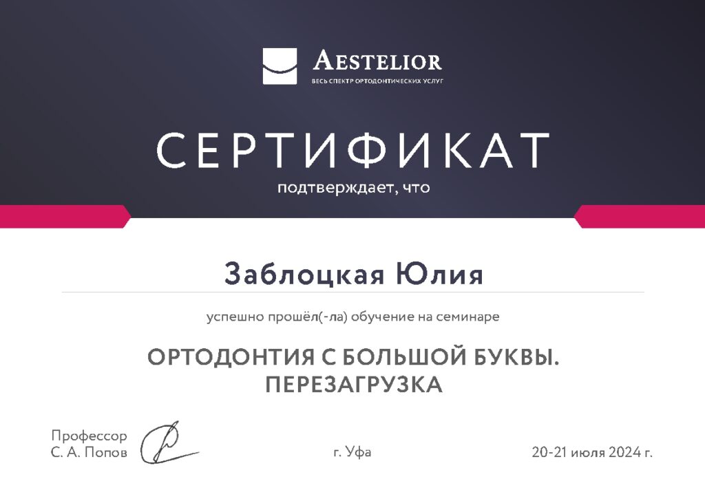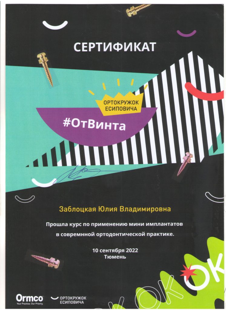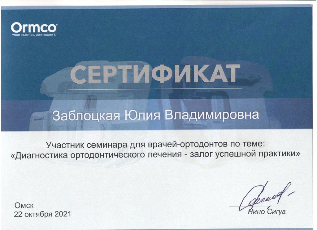 Первичная аккредитация от 27.07.2022 года по специальности «Ортодонтия»